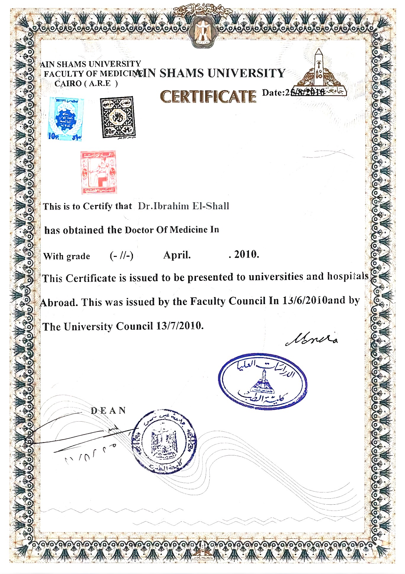 زميل الجمعيه المصريه لامراض السمع والاتزان