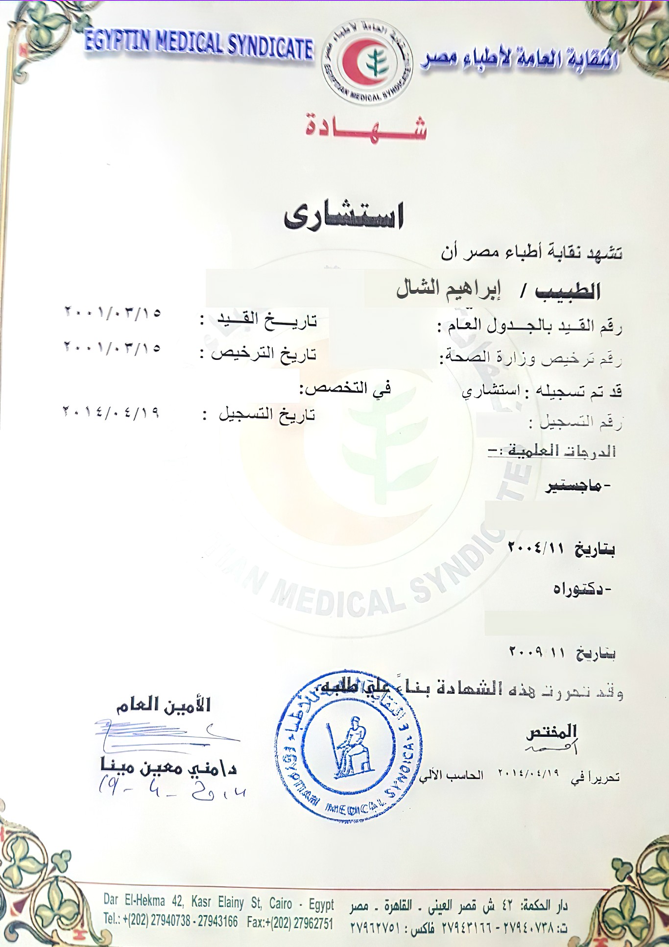 عضو الجمعيه المصريه لطب السمعيات